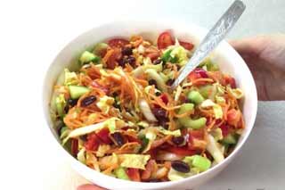 Напередодні літнього сезону і в перші числа літа багато представниць прекрасної статі прагнуть схуднути, досягти ідеальної форми.Тому цей салат, який готується швидко і легко, входить до раціону багатьох, хто худне. Мінімум калорій, майонез не потрібний і на готування витрачається від сили п'ять хвилин. |