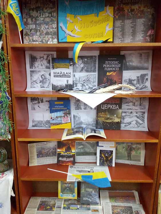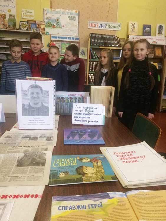 світлини Героїв Небесної Сотні та підбірку газетних статей «Вони загинули за Україну» та проведено урок пам’яті «Зростаймо патріотами своєї країни».