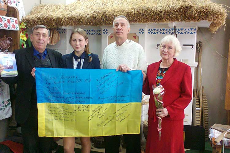 В Тарасівській школі велика увага приділяється патріотичному вихованню підростаючого покоління.Нещодавно в школу завітав житель села, який зараз проживає в місті Полтава, член громадської організації «Громада України», волонтер, батько загиблого Героя Кабушка Олексій Михайлович та поетеса, журналіст Третяк Ніна. Учні з цікавістю слухали розповідь Олексія Михайловича про його волонтерську діяльність, його погляд на події на сході нашої країни, настрої простих людей та тих, що приходять на допомогу при найпершій потребі. Із скорботою на обличчях почули інформацію про загибель на сході сина Олексія Михайловича Мирослава. В 18 полтавській школі, де навчався Мирослав Олексійович, відкрито меморіальну дошку на честь Героя. На пам’ять про відвідування школи гість залишив прапор, привезений ним із зони бойових дій із підписами та подякою йому як волонтеру від учасників АТО. Тепер цей прапор буде зберігатись у шкільному Музеї Хліба як цінний експонат. ЧИТАЙТЕ ТАКОЖ: Гребінківська школа №1: Атестація педагогічних працівників(І (шкільний) етап) З не меншою цікавістю учні слухали розповідь поетеси Ніни Третяк, її вірші, які вона написала про бажання людей жити в мирі, про дітей загиблих Героїв. Прочитала вірш, який присвятила саме Кабушці Олексію Михайловичу. Ніна Третяк подарувала школі свою останню збірку віршів. Підписуйтесь на наші оновлення у Facebook, та Twitter: всі найважливіші події Гребінківщини, і не тільки, в одному місці.