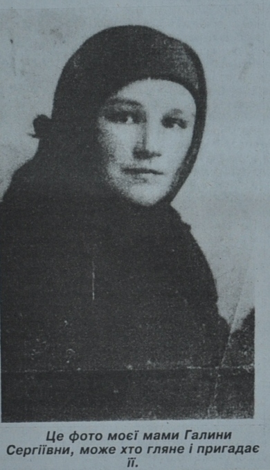 Де вона зараз? Хто її виростив? Як звати? Були б ми разом, може і доля моя була б не такою гіркою. Прошу всіх, хто колись жив чи працював поруч з моєю мамою та пригадає трагедію смерті. А, може, ще живі хтось із батькових родичів? Відгукніться, люди добрі!