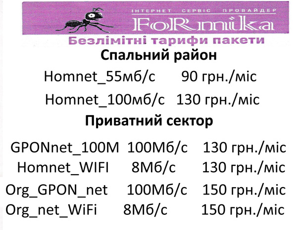 Увага! Змінився порядок оплати: тепер кошти за наступний місяць доступу до мережі INTERNET необхідно внести до 01 числа поточного місяця. Довідки за тел. 099-77-29-001 та 095-375-37-77.