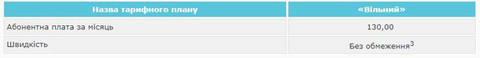 Швидкість передавання для всіх тарифних планів – до 3 Мбіт/с.