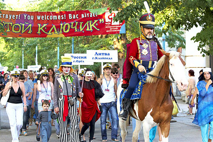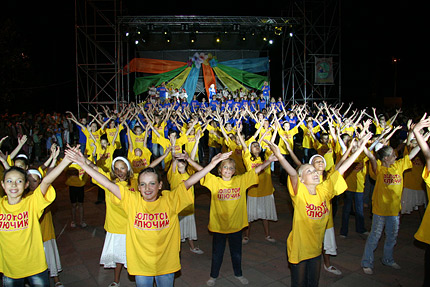 ![]() Участники фестиваля из города Лисичанск, Украина ![]() Участники фестиваля из России г. Щелково и г. Орёл Участники из г. Челябинск, Россия г. Орёл. Россия Открывает 15-й юбилейный Международный фестиваль "Земля. Театр. Дети" мер города Евпатории Андрей Даниленко и Генеральный директор МДЦК "Золотой Ключик", заслуженый работник культуры, лауреат гос. премии АРК, отличник образования Украины Нина Петровна Пермякова ![]() На сцене Доком, Пышка, Буфом, Куколка, Лира, Перпетуумом и Ворчун. ![]() презентация СD «Песни нашего феста», выход сразу двух номеров городской детской газеты «Антракт», ежедневный видео-дневник на большом экране, презентация новой линии концептуальной игрушки «Homo sapiens». В ходе праздника гости познакомятся с 7 талантами фестиваля: Доком, Пышкой, Буфом, Куколкой, Лирой, Перпетуумом и Ворчуном. Церемония открытия юбилейного фестиваля «Земля.Театр. Дети» состоялась 1 июля. 2 июля пройдёт «Праздник талантов». «Полный Fashion» - так называется программа, запланированная на 3 июля. Далее участников форума ожидает экспериментальный проект без репетиций «Ковбойская история». Он состоится 4 июля. Программой следующего дня станет весёлый театральный капустник. Бал-маскарад пройдёт 6 июля. 7 июля фестиваль завершит свою работу. В этот день состоится церемония вручения премии Олега Пермякова в области театрального искусства лучшим участникам фестиваля. Схожі матеріали: | ||