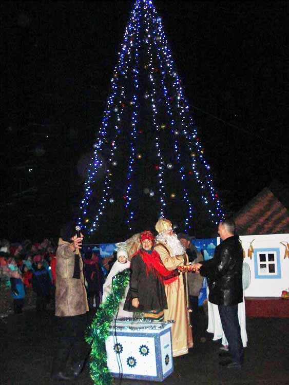 Новорічно-різдвяні святкування в Гребінці розпочалися засвічуванням головної ялинки. Цього року вона – штучна.