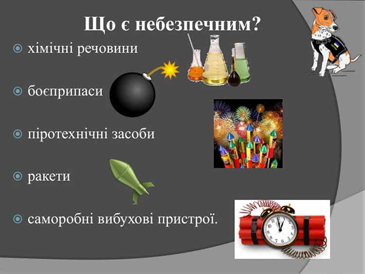 - дочекайтеся прибуття фахівців, укажіть місце знахідки та повідомте час її виявлення.