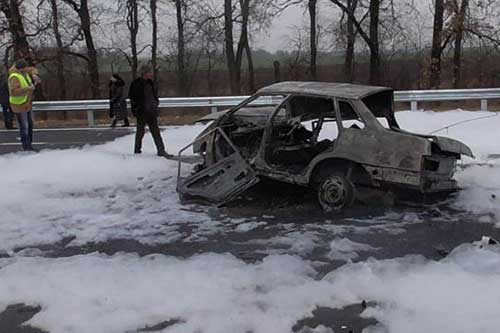 16 листопада о 08:00 до Служби порятунку «101» надійшло повідомлення про те, що на 151 кілометрі автодороги Київ-Харків автомобіль ВАЗ-21099 наїхав на металеву огорожу та загорівся.