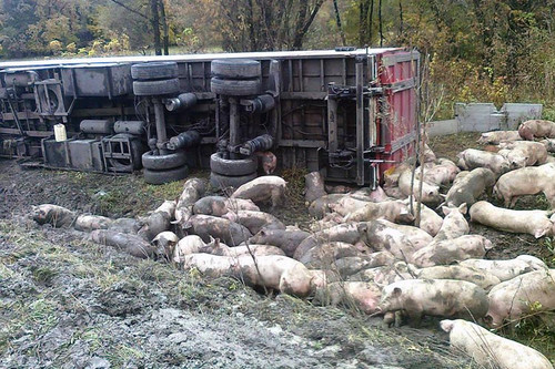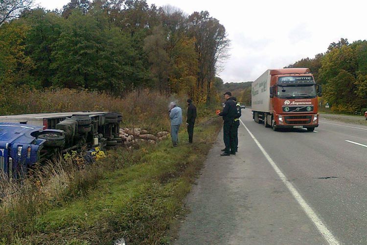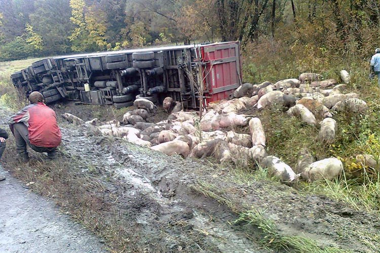 Під Лубнами біля села Вільшанка перекинулась вантажна машина, яка перевозила свиней. Водій не постраждав, свині кинулись урозтіч, але власник та його помічники завадили тваринам утекти.