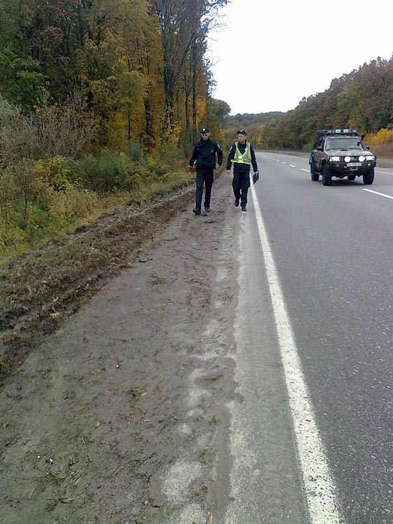 Підписуйтесь на наші оновлення у Facebook, та Twitter: всі найважливіші події Гребінківщини, і не тільки, в одному місці.Виклик на "102" надійшов о 6.40 ранку. Наш кореспондент прибув на місце події о 10.40. Патрульні ще тільки почали оформляти протокол та виміряли рулеткою гальмівний шлях. Як говорить сам водій, який, на щастя, не постраждав фізично, - була ніч, темно, йшла злива, зустрічне авто його засліпило і все сталося в один момент. Один солідний чолов'яга не дав договорити водію та й взагалі заборонив будь-кому давати коментарі. Видно господар. Постраждав водій та ще кілька чоловіків, які перевозили цей свинячий вантаж. Тобто, від моменту аварії, майже 4 години, ці люди мокрі, у грязі тримають за наказом господаря свиней, щоб не розбіглися. Водій, судячи з усього, їхав всю ніч у таку непогоду. Видно за наказом господаря свинячого бізнесу. То хто свині? Радує одне, що не через місто їхали, як їздить газова бомба. Уявляю як би ці свині по вулицях тут ганяли)." ВІДЕО: