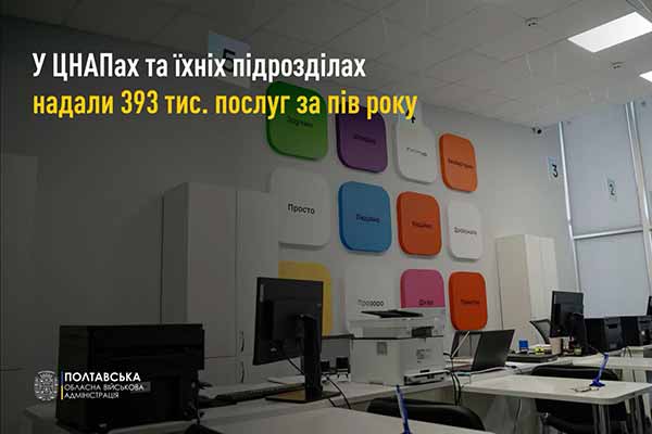 ЦНАПи, їхні територіальні підрозділи та віддалені робочі місця адміністраторів за пів року надали 393 тис. послуг на Полтавщині.