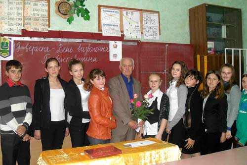 Вшанували пам'ять загиблих хвилиною мовчання, поклали квіти до підніжжя пам'ятників. Учні з хвилюванням сприйняли розповідь ветерана, щиро подякували за зустріч та привітали зі святом визволення рідного міста.