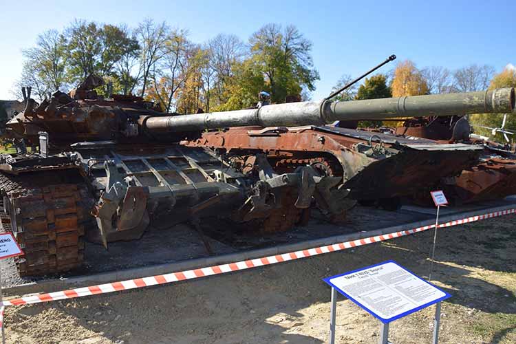 На відкритому майданчику музею відвідувачі можуть оглянути знищену та захоплену воїнами ЗСУ військову техніку колишньої "другої армії світу". Загалом гостям виставки для огляду доступно близько 10 експонатів техніки, яку привезли з Тростянця, Охтирки, Гадяча та Київщини. Серед них танк, гаубиця, бойова машина піхоти, бронетранспортер, рештки гелікоптера та хвостова частина літака СУ-25СМ.