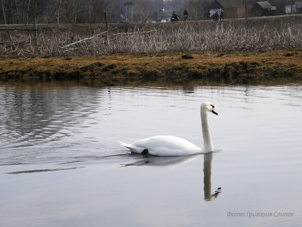 Лебеди на речке Оржица, 29.03.2010г.