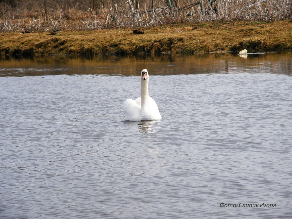 Лебеди на речке Оржица, 29.03.2010г.