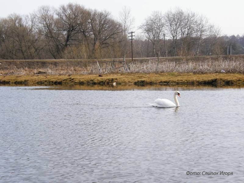 Лебеди на речке Оржица, 29.03.2010г.