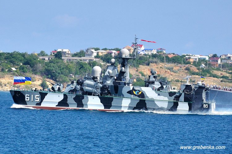 31-07-2011 В Севастополе День ВМФ РФ отметили смотром кораблей и показом боевых возможностей флота. Открыл показ ракетный катер «Бора», который нес флаги Украины и России.