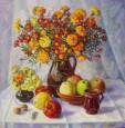 Картина "Осінні квіти та яблука"