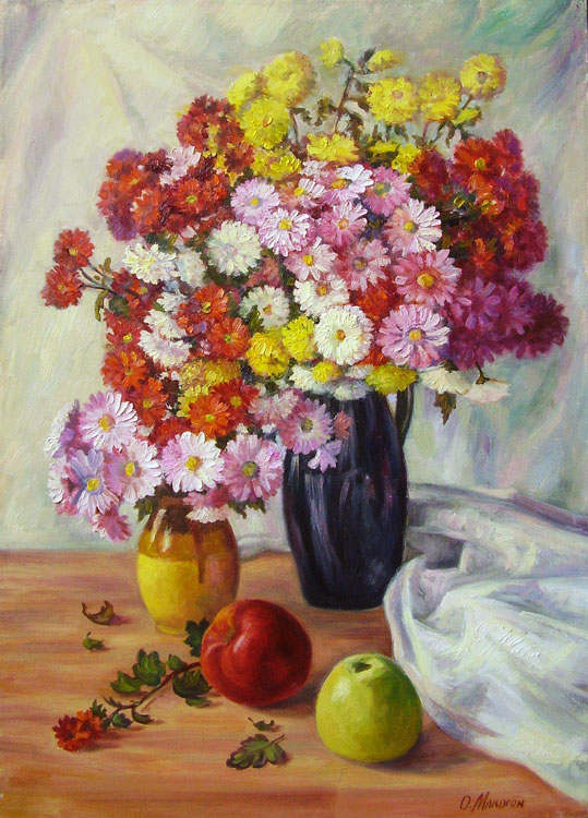 Картина Гребінківського художника - Макогона О. В. "Осінні квіти та яблука"