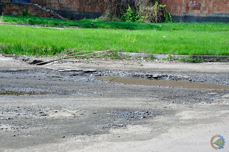 19. 04.2016 р. Ями на дорозі в Гребінці (перехрестя вул. Магістральна та вул. Миру)