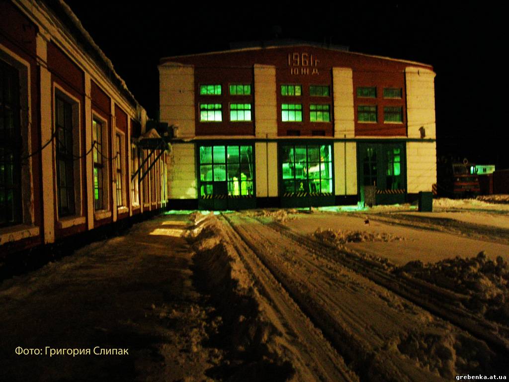 Локомотивное депо Гребёнка, цех ТР-3 в ночное время, 07.02.2010 г.