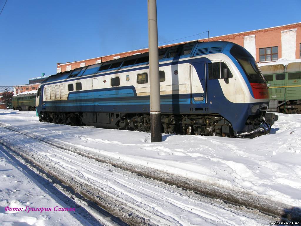 Тепловоз ТЭП150-004 в локомотивном депо Гребёнка, 07.02.2010 г.