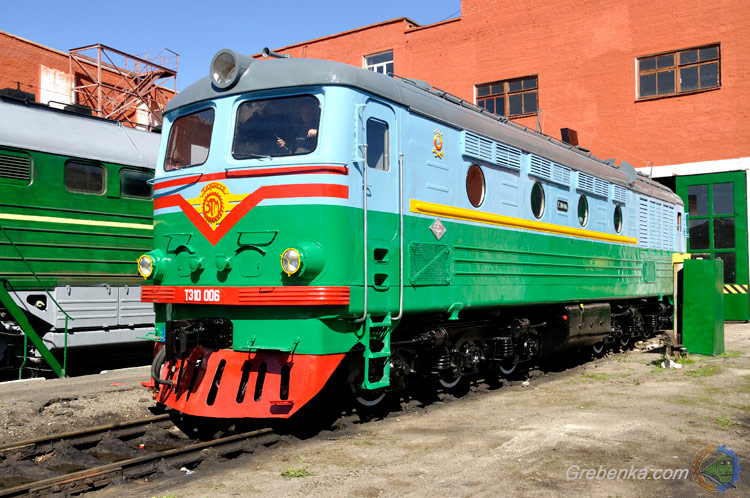 Музейно выставочный экспонат, тепловоз ТЭ10 006, локомотивное депо Гребёнка (ЮЖД)