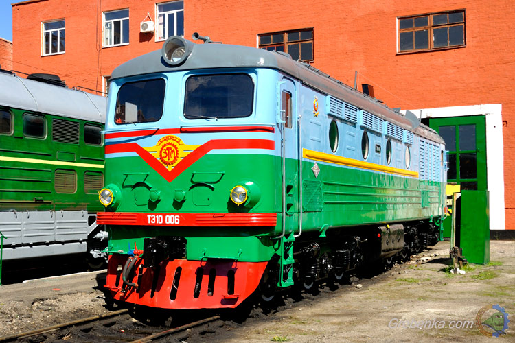 Музейно выставочный экспонат, тепловоз ТЭ10 006, локомотивное депо Гребёнка (ЮЖД)