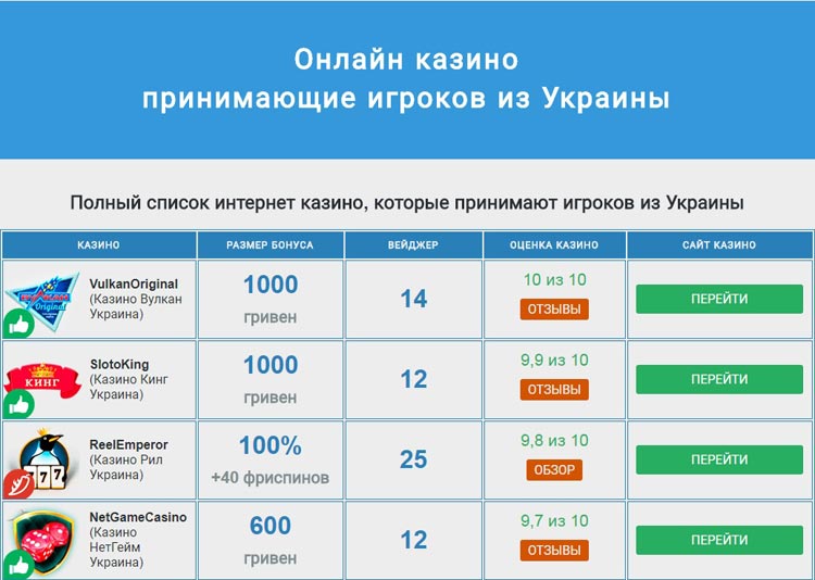 Оптимальные характеристики для украинского казино