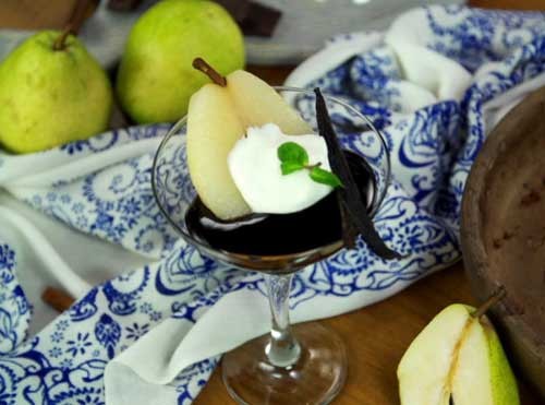 • твердые груши - 2 шт.Для сиропа: • сахар - 300 гЧИТАЙТЕ ТАКЖЕ: Тирамису с вишней 1. Срезать кожуру целой груши, но оставить плодоножку. Зачистить все неровности краем ножа. Груша должна быть идеально гладкой. 2. Поставить грушу на дно кастрюли. Налить воды так, чтобы она покрывала грушу полностью, кроме плодоножки. Насыпать сахар, положить бадьян и кардамон. Совет: можно использовать и другие специи. Например, гвоздику, корицу, цедру апельсина и лимона. 3. Поставить вариться на 30 минут. 4. Охлажденные сливки взбить. Совет от шефа! И сливки, и посуда должны быть холодными. 5. Добавить сахарную пудру, семена ванили или пакетик ванилина. Накрыть миску пленкой и поставить в холодильник. 6. Грушу разрезать пополам. Чайной ложкой аккуратно вытащить сердцевину. Положить грушу в холодильник на 40 минут или на 1 час. 7. Растопить шоколад на водяной бане. 8. В формочку положить горячий шоколад, затем холодную грушу. В сердцевину выложить сливки. Важно, чтобы в десерте чувствовался контраст горячего шоколада, холодной груши и прохладных сливок. Можно украсить десерт палочкой ванили. | ||