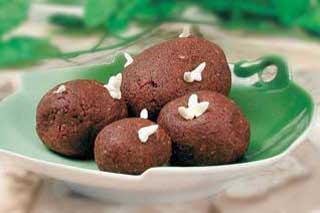 У молоко додають цукор і при помішуванні доводять до кипіння. Цукор повинен повністю розчинитися.Молоко злегка охолоджують, додають масло або маргарин, какао, подрібнені сухарі, рубані горіхи і добре перемішують. Готову масу витримують в холодильнику 20-30 хвилин. З маси формують тістечка у вигляді картоплин, обвалюють в какао - порошку або в суміші какао - порошку і сухарів. |
