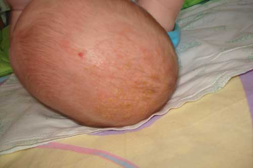 Почему возникают сухие корочки на голове у грудничка, и как надо ухаживать за волосистой частью головы новорожденного.